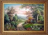 Landscape Tree Oil Painting 24 x 36 inches, with Exquisite Dark Gold Wood Frame Features